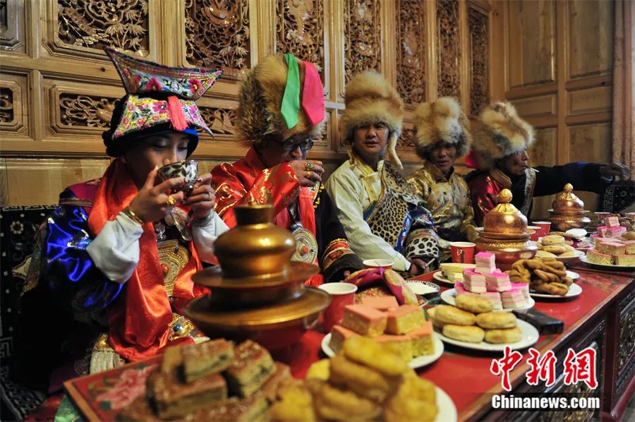 趙國棟:藏民族的熱情好客在飲茶中即可體現(xiàn)。家中來客,主人要請客人在主位坐下。倒茶前要先清潔茶具,倒茶時要正對著客人,雙手捧著茶壺慢慢注入茶湯。