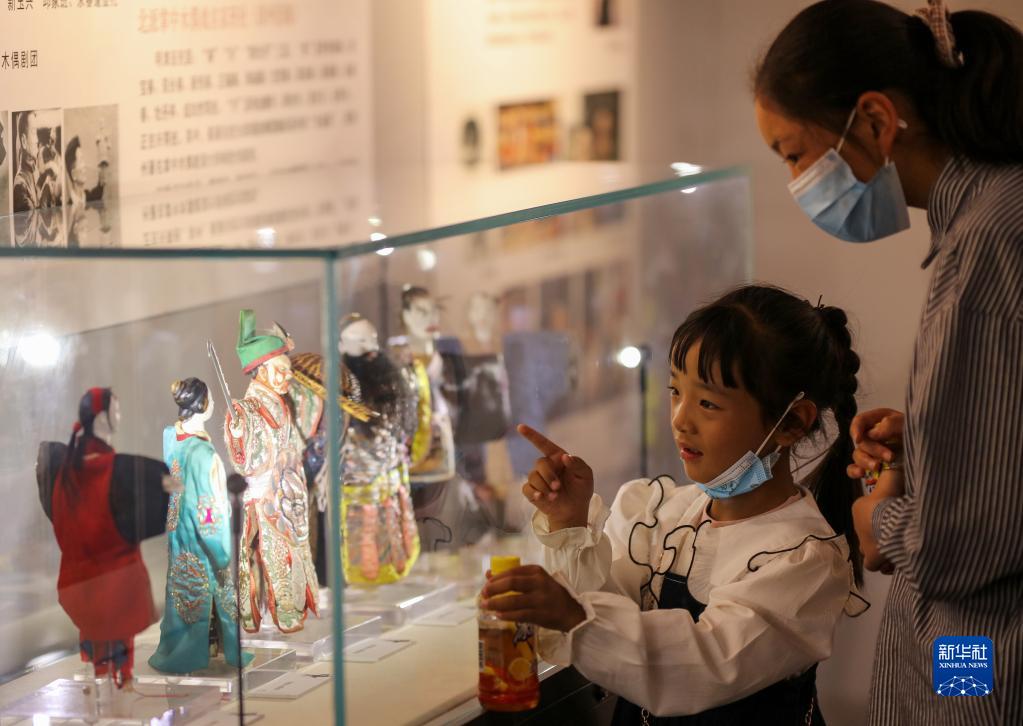 參觀者在木偶藝術展展廳內觀賞木偶。新華社記者 姜帆 攝