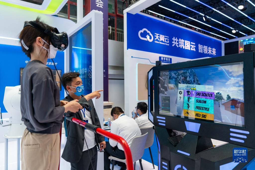 參觀者在2022全球數(shù)字經(jīng)濟(jì)大會拉薩峰會上體驗(yàn)VR運(yùn)動游戲。新華社記者 周荻瀟 攝