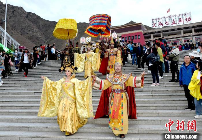 當(dāng)晚,《文成公主》的演員們身著特色民族舞蹈服飾現(xiàn)身劇場(chǎng)外,巡游在慈覺林藏院風(fēng)情街,重現(xiàn)“公主”與“贊普”的和親盛況,并與來(lái)自五湖四海的觀眾近距離接觸,切身感受非比尋常的西藏文化。