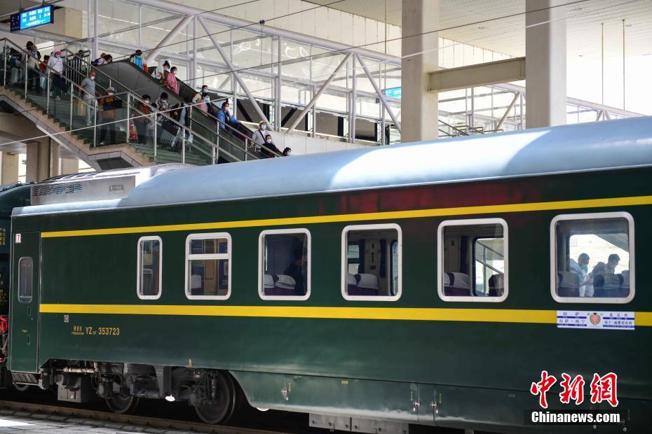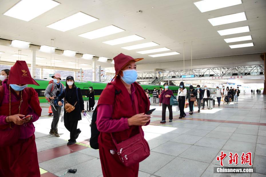 8月11日,旅客有序來(lái)到鐵路拉薩站站臺(tái)上。據(jù)悉,自本次疫情發(fā)生以來(lái)拉薩火車站日均離藏運(yùn)送旅客數(shù)量約6000人次,貢嘎機(jī)場(chǎng)累計(jì)出港旅客約2萬(wàn)人次。 中新社記者 貢嘎來(lái)松 攝