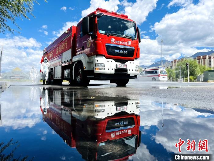 圖為拉薩消防指戰(zhàn)員為西藏加油?!±_市消防救援支隊(duì) 攝