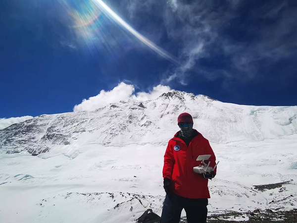 高壇光手持無(wú)人機(jī)(遙控器)于珠穆朗瑪峰上留影