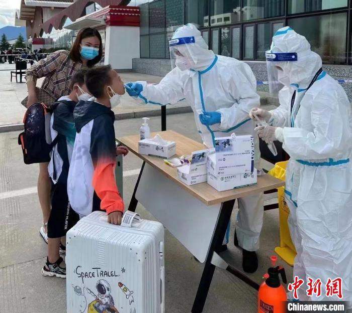 圖為西藏林芝米林機(jī)場(chǎng)游客現(xiàn)場(chǎng)接受抗原檢測(cè)。米林機(jī)場(chǎng)供圖