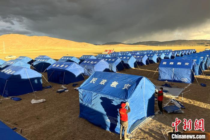 圖為改則縣“帳篷方艙醫(yī)院”添置配套設(shè)施。改則縣融媒體中心供圖