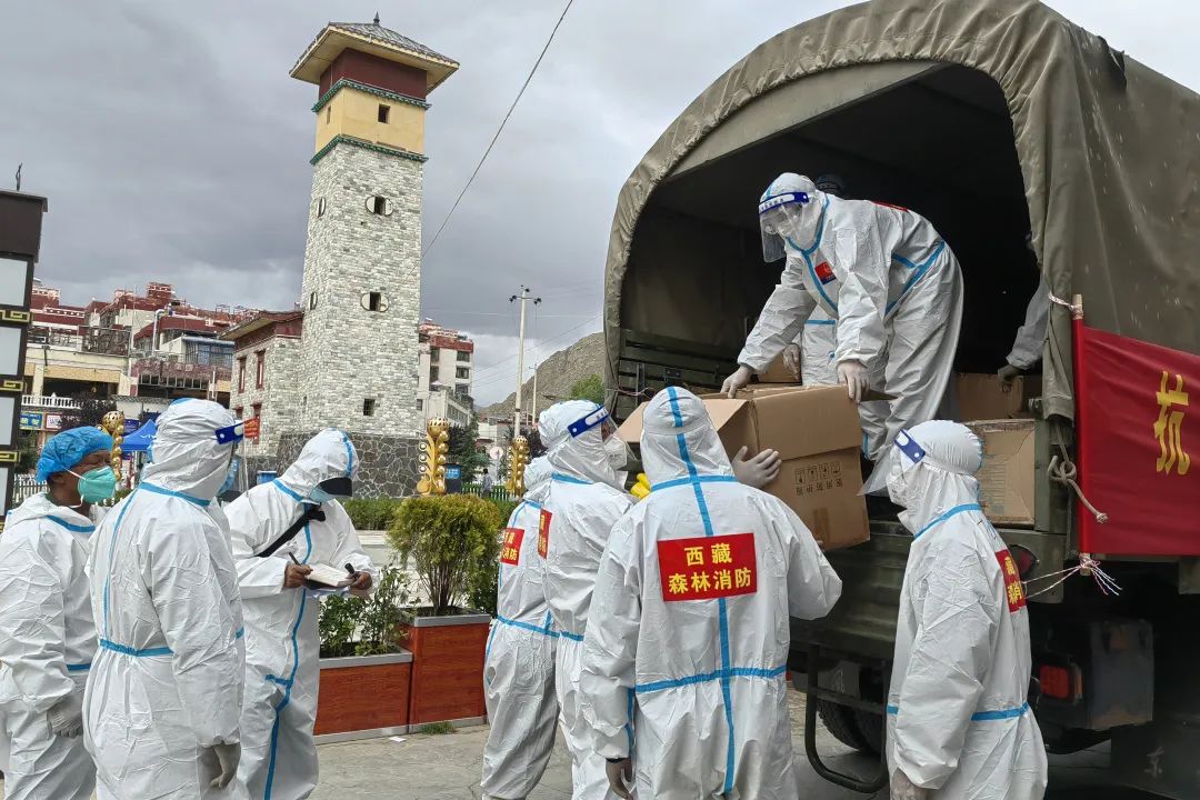 據(jù)那曲市森林消防大隊代理大隊長孔特特介紹:疫情發(fā)生后,駐防分隊迅速成立“西藏森林消防新型冠狀病毒疫情防控黨員先鋒隊”,在山南市各社區(qū)、小區(qū)等重點區(qū)域為公安和醫(yī)護(hù)人員搭建生活帳篷;向山南市火車站、小區(qū)、居民樓、菜市場、村組等41個核酸檢測點完成防疫物資配送。