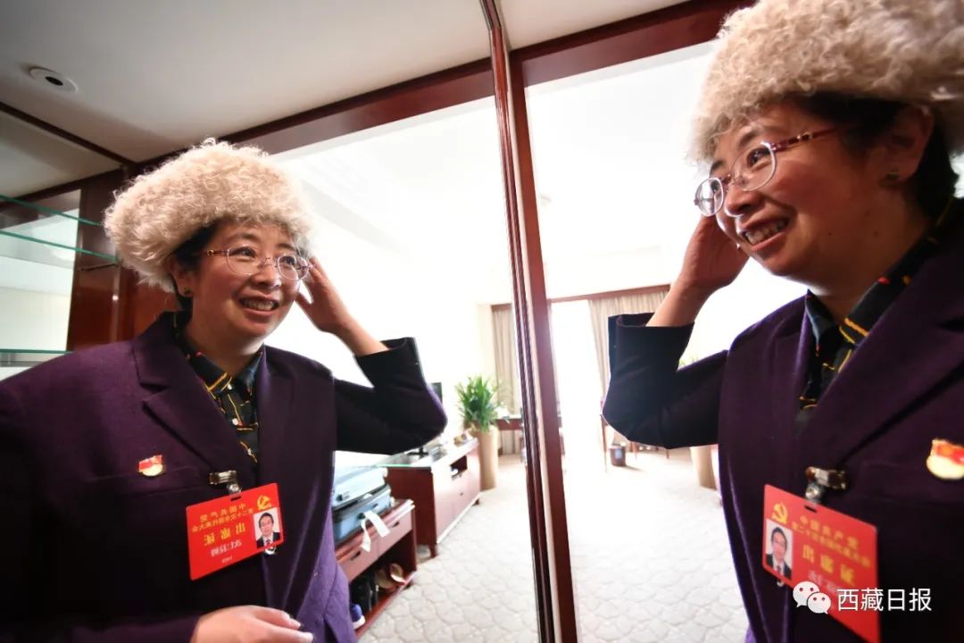 作為那曲市特殊教育學校校長,次仁拉姆代表此次赴京參會專門戴上了學生親手制作的帽子,將以飽滿的熱情開好這次大會。記者 旦增西旦 攝