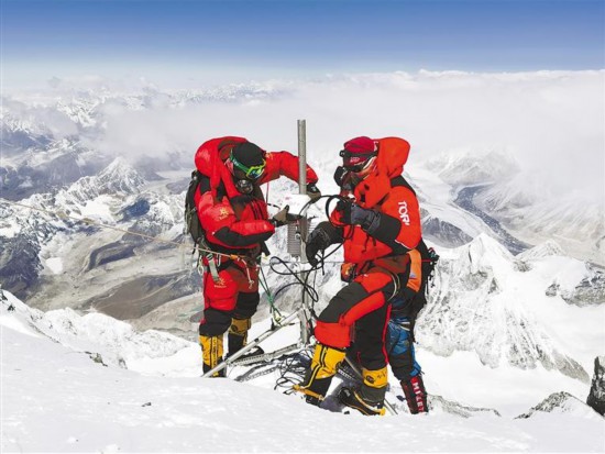 配合開展國(guó)家第二次青藏高原綜合科學(xué)考察研究,助推西藏自治區(qū)加快建設(shè)生態(tài)文明高地。圖為2022年5月4日,珠峰科考登頂隊(duì)員在珠穆朗瑪峰海拔8830米處成功架設(shè)全球海拔最高的自動(dòng)氣象站。