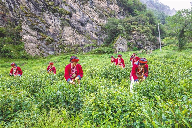 圖為加快建設(shè)邊境沿線發(fā)展帶,邊境一線各族群眾生活有保障、致富有渠道、守邊有動力、發(fā)展有支撐。圖為西藏自治區(qū)錯那縣茶葉專業(yè)合作社農(nóng)牧民采摘新茶。