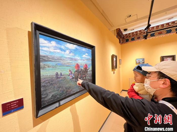 帶兒子一同前來(lái)參觀的向先生曾于2013年夏季到西藏旅游。他告訴記者,畫(huà)中的風(fēng)景、建筑和服飾非常寫(xiě)實(shí);有關(guān)冬季的畫(huà)作彌補(bǔ)了他未見(jiàn)西藏冬日美景的遺憾。