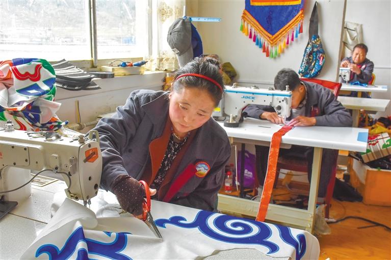 圖為“雙創(chuàng)”孵化基地的格拉夏手工業(yè)有限責(zé)任公司員工在制作帳篷。劉楓 攝