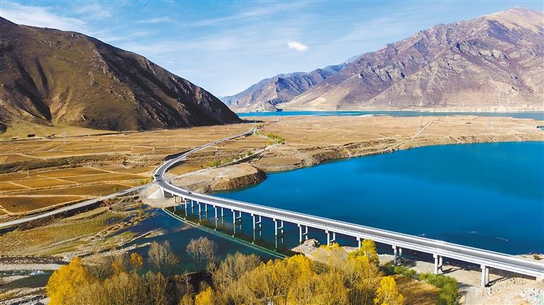 黨的十八大以來,西藏交通運輸事業(yè)取得巨大成就,形成了縱橫交錯、四通八達的綜合交通運輸網(wǎng)絡。十年來,全區(qū)公路總里程由6.52萬公里增至12.07萬公里,高等級(高速)公路通車里程由38公里增至1105公里,以拉薩為中心的3小時綜合交通圈正加快形成,拉林鐵路建成投運,復興號首次開上高原……一條條團結(jié)線、一條條幸福路,為西藏經(jīng)濟社會發(fā)展提供了有力支撐。