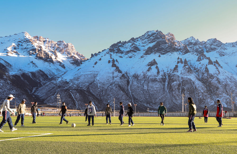 這是西藏那曲市嘉黎縣中學(xué)的足球場(chǎng)(3月30日攝)。新華社記者 周荻瀟 攝