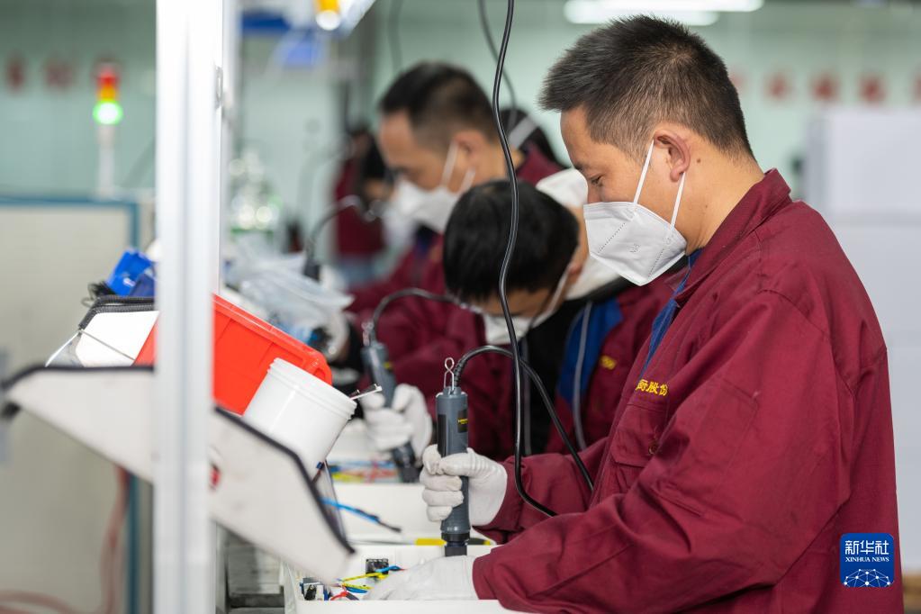 11月27日,在拉薩市一家工廠內(nèi),工人在電器裝配生產(chǎn)線上作業(yè)。新華社記者 周荻瀟 攝