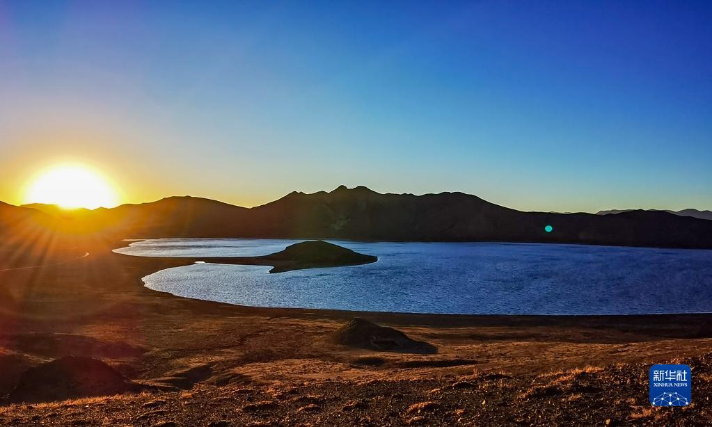這是夕陽下的羊卓雍錯(cuò)(12月11日攝)。新華社記者 沈虹冰 攝