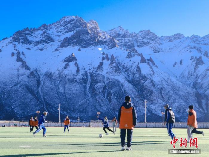 圖為11月25日,西藏那曲市嘉黎縣中學(xué)學(xué)生們在“雪山下的夢幻足球場”上進(jìn)行足球訓(xùn)練。中新社記者 貢嘎來松 攝