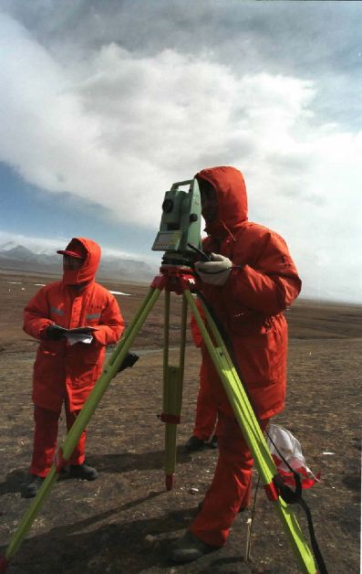 2001年4月,鐵道部第一設(shè)計(jì)院的勘測人員在海拔近5000米的四道梁加緊進(jìn)行青藏鐵路的勘測工作。在國務(wù)院批準(zhǔn)修建青藏鐵路后,鐵道部第一設(shè)計(jì)院的上千名勘測人員克服惡劣的自然條件,為青藏鐵路早日開工夜以繼日地工作。