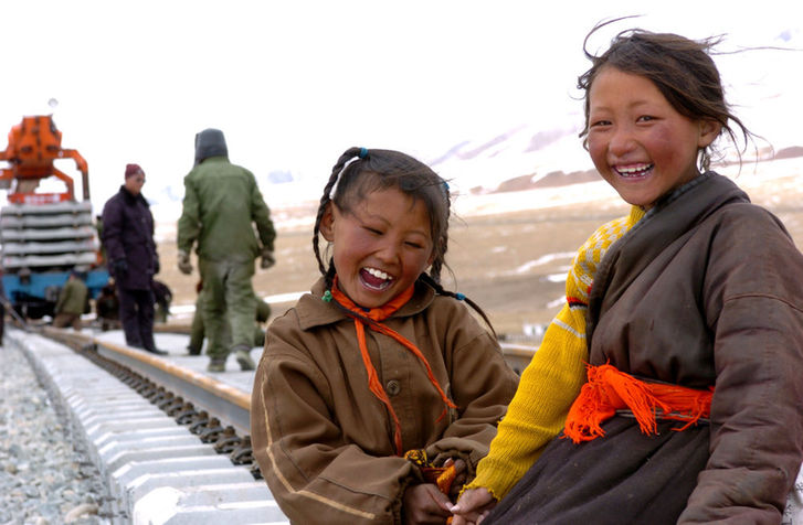 青藏鐵路的建設(shè)工地成為了附近居民最大的關(guān)注點(diǎn),老鄉(xiāng)們來到工地東瞅瞅、西瞧瞧,好奇地摸摸鐵軌,或者甚至拉著工人們問問這、問問那——盡管很多時(shí)候,由于語言不通的緣故,他們并不能夠了解對方在說什么。在故鄉(xiāng)人的臉上,我看到了對未來變化的憧憬,以及對鐵路建成越來越急迫的渴望。