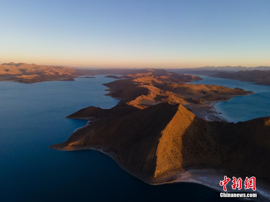 近日,西藏自治區(qū)山南市羊卓雍錯(簡稱羊湖),冬日由于沒有云層遮擋,湖水更顯深藍、孔雀藍。航拍視角下,湖水像巨大的寶石鑲嵌于高原大地,風(fēng)光壯麗。羊卓雍錯藏語意為“碧玉湖”,湖面海拔4441米,與納木錯、瑪旁雍錯并稱西藏三大“圣湖”。圖為日落后的羊卓雍錯風(fēng)光。 江飛波 攝
