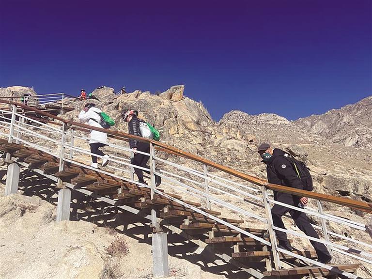 活動(dòng)中,登山群眾不懼冬日寒冷,挑戰(zhàn)每一級(jí)臺(tái)階,當(dāng)攀登到終點(diǎn)時(shí),大家紛紛合影留念,欣賞重巒疊嶂,俯瞰拉薩全景,許下新年的美好愿望。
