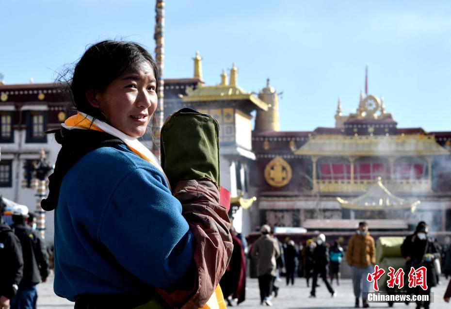 1月12日,西藏拉薩,信眾在大昭寺前朝拜。 李林 攝