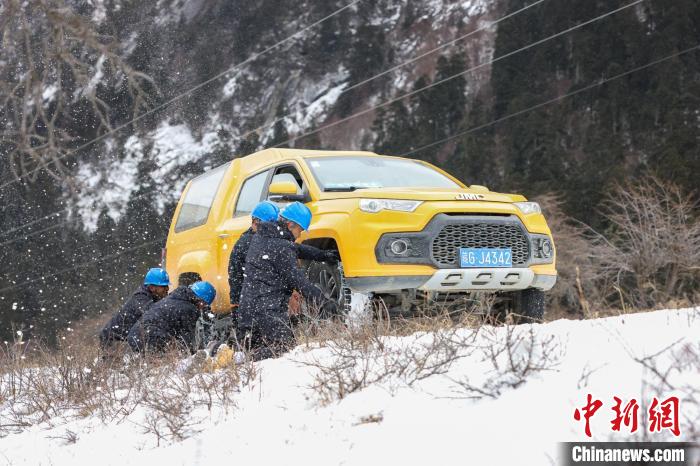 盤(pán)山公路上,積雪和暗冰使車(chē)輛打滑無(wú)法繼續(xù)前行,羅布頓珠和隊(duì)友只好下車(chē),給車(chē)輛掛好防滑鏈繼續(xù)前行,原本兩個(gè)小時(shí)的車(chē)程,這次花了4個(gè)小時(shí)才抵達(dá)巡線(xiàn)點(diǎn)。