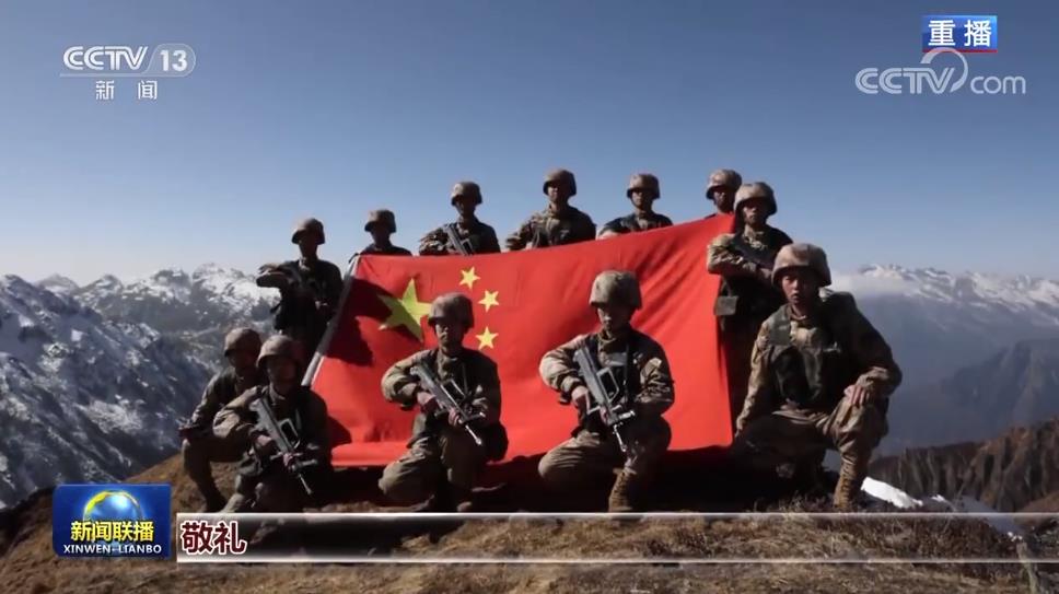 巡邏隊(duì)在中午登上海拔5000多米的高山點(diǎn)位,他們?cè)谶@里展開國(guó)旗,宣示主權(quán)。