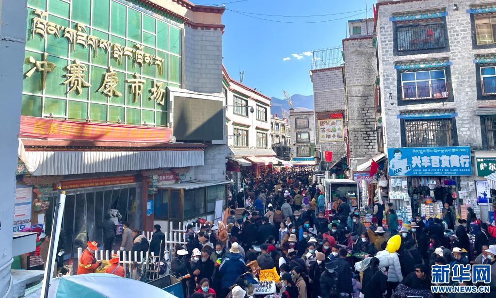 農歷春節(jié)年味兒尚未散去,拉薩街頭張燈結彩,年貨市場各種商品琳瑯滿目,置辦年貨的人摩肩接踵。古城在歡樂祥和的氛圍中喜迎藏歷水兔新年(2月21日)。