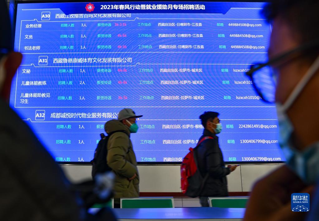 2月8日,求職者在西藏2023年“春風(fēng)行動”暨就業(yè)援助月招聘活動現(xiàn)場尋找崗位。新華社發(fā)(旦增努布攝)