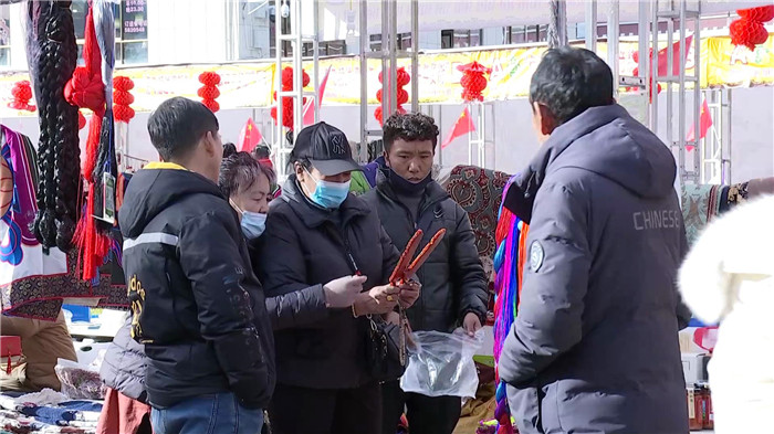 走進(jìn)年貨街,記者看到大街小巷置辦年貨的人群紛至沓來,市場上酥油、卡賽、人參果、五彩青稞穗、切瑪盒、花束等藏歷新年傳統(tǒng)年貨應(yīng)有盡有,特色產(chǎn)品豐富充裕。人們盡情挑選年貨,大包小包滿載而歸。