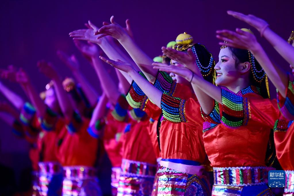 2月21日,學(xué)生在西安市浐灞第一中學(xué)舉行的藏歷新年團(tuán)拜活動上表演藏族舞蹈。新華社記者 李一博 攝