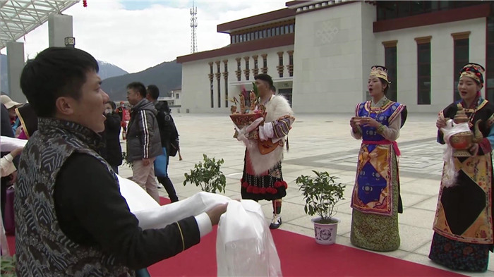 在歡迎儀式上,漂亮的工布姑娘唱起了歌,帥氣的工布小伙端起了香醇的青稞酒,副市長段剛輝為游客們獻上潔白的哈達(dá),對遠(yuǎn)道而來的客人表示熱烈的歡迎和誠摯的祝福,并在致辭中向游客們介紹了林芝的自然風(fēng)光和民俗文化。