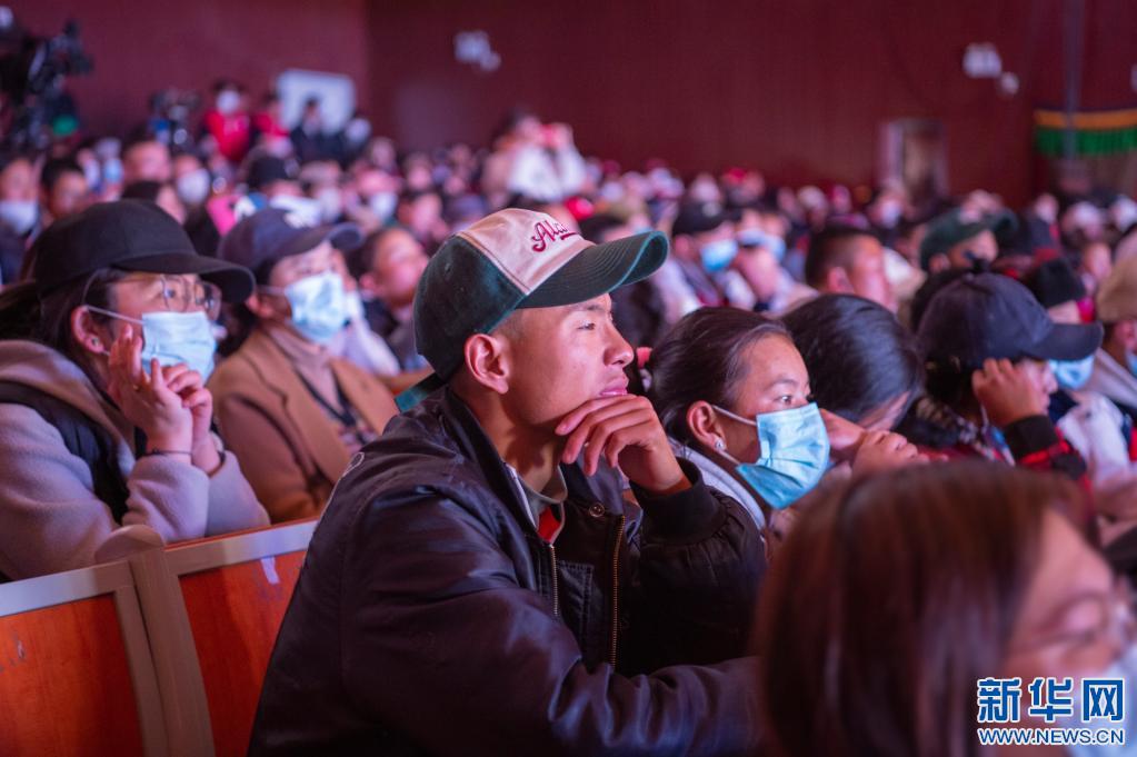 認真觀看話劇的觀眾(3月28日攝)。旦增努布 攝