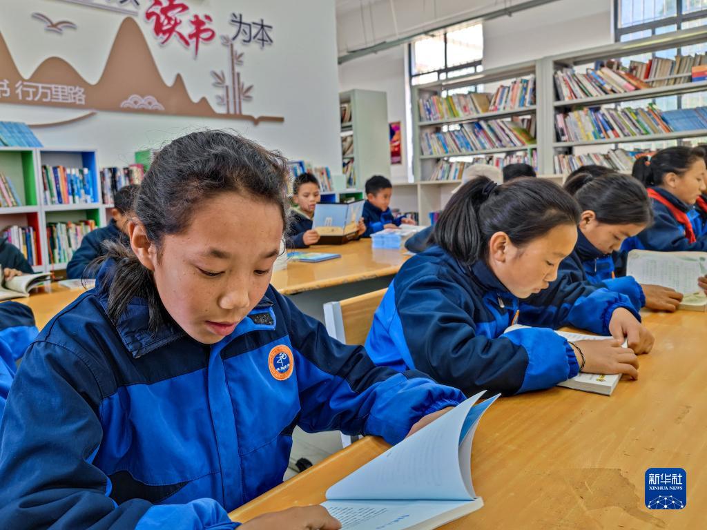 3月31日,下察隅鎮(zhèn)的孩子們?cè)陂_(kāi)放書吧閱讀書籍。新華社記者 王澤昊 攝