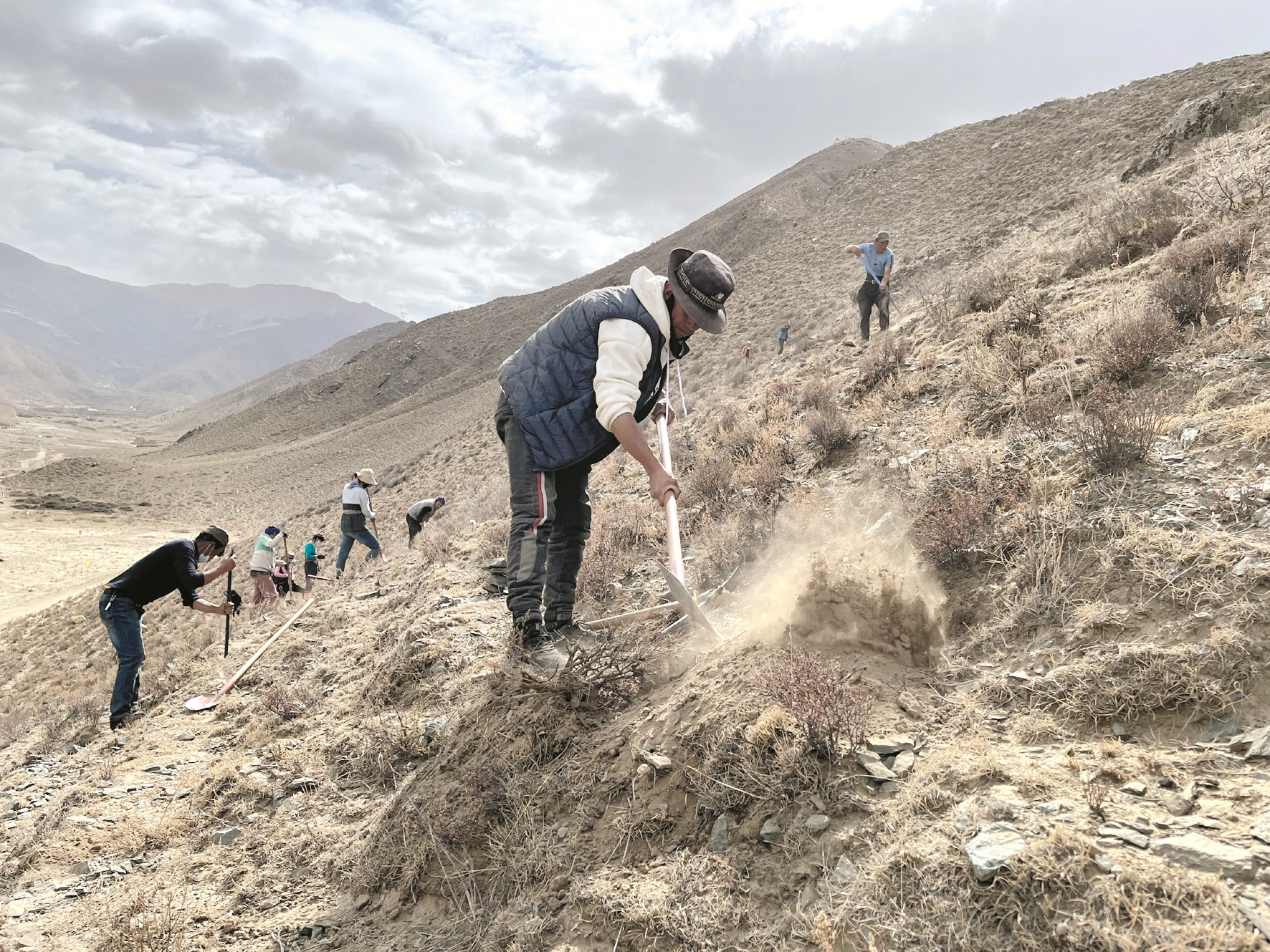 4月,正是一年春光好。記者來到曲水縣才納鄉(xiāng)才納村3-2號綠化造林項目點(diǎn)看到,工人們正在加緊挖坑、客土。該植樹點(diǎn)平均坡度在45度左右,有的地方甚至接近60度。在陡峭的坡面上挖坑、運(yùn)樹、栽植需要花費(fèi)大量的心血和體力。但不管山有多高、坡有多陡,按時節(jié)、高質(zhì)量地把樹苗種下的生態(tài)理念已經(jīng)在每一個植樹人心中落地生根。