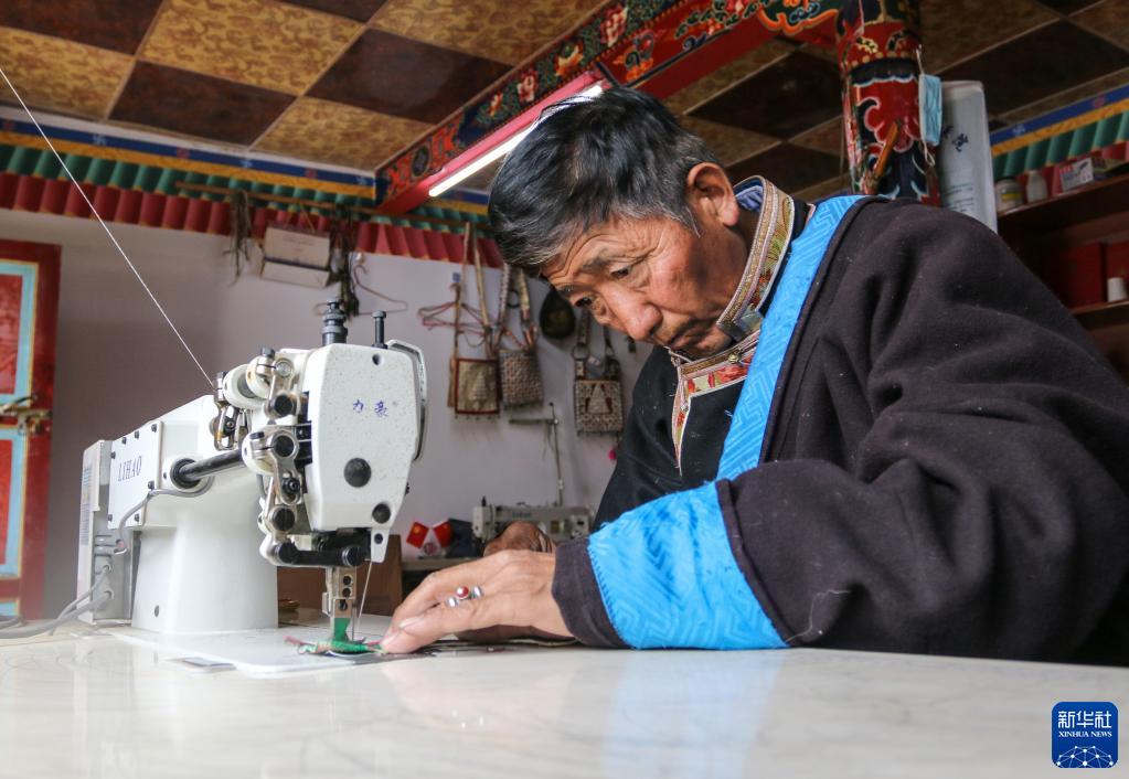 61歲的索朗群培回憶,他小時(shí)候見(jiàn)到村里的大人騎在有馬包的馬上,特別威風(fēng),讓他對(duì)制作馬包產(chǎn)生了濃厚興趣。21歲時(shí),他師從當(dāng)?shù)乩纤嚾硕嗖冀軐W(xué)習(xí)馬包制作技藝。如今,他已是林芝市第一批市級(jí)非物質(zhì)文化遺產(chǎn)項(xiàng)目中馬包手工制作技藝的傳承人。