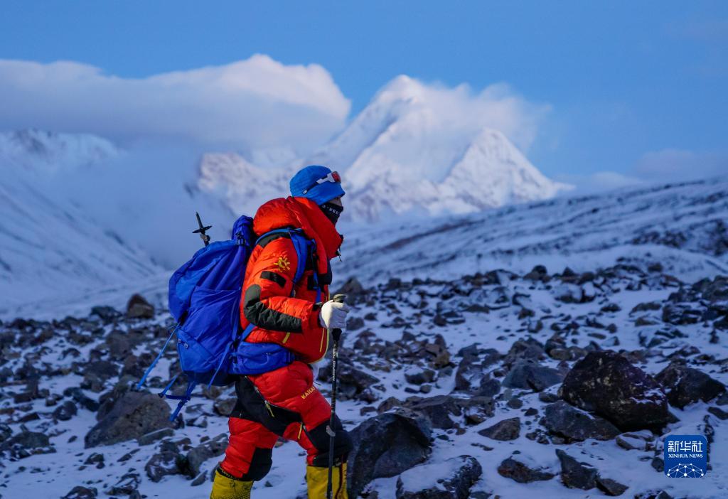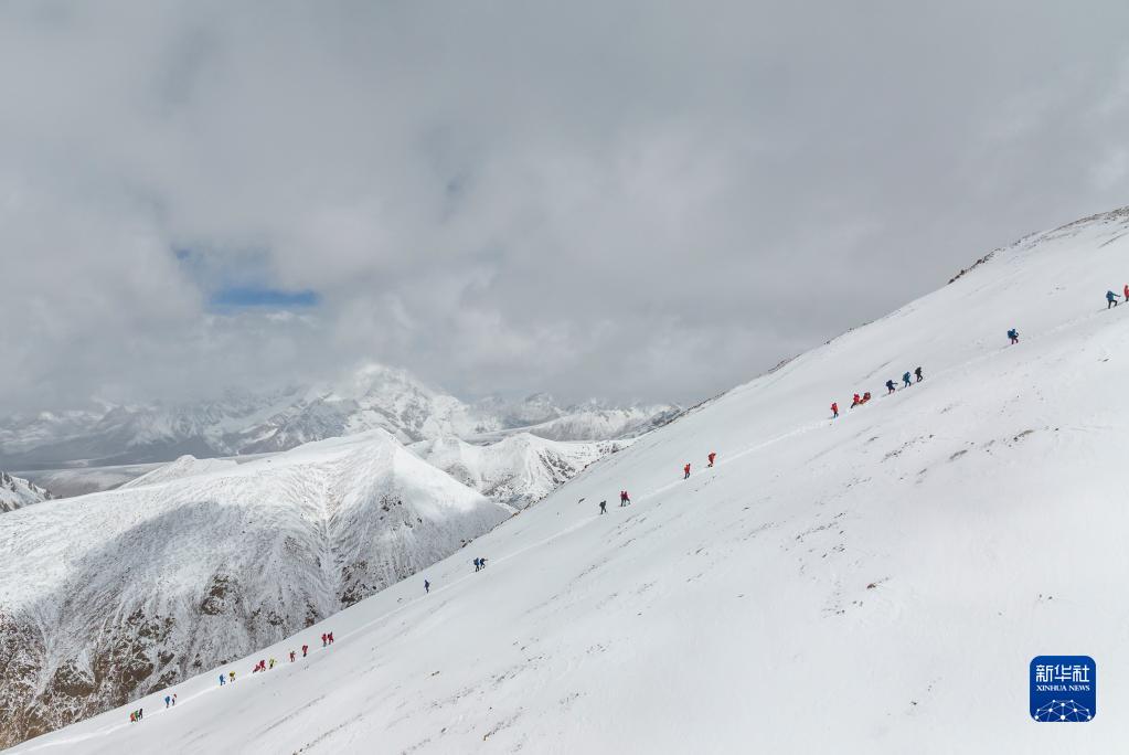 5月3日,登山愛好者正在向海拔6010米的洛堆峰峰頂進(jìn)發(fā)。新華社記者 黃耀漫 攝