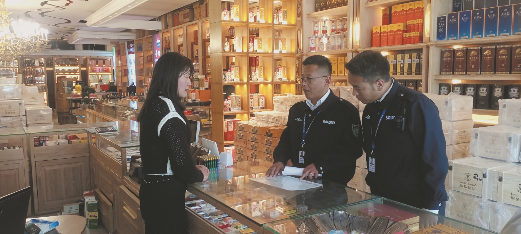 市煙草專賣局執(zhí)法人員先后對拉薩市北京西路、德吉南路等路段的西藏?zé)煵萘闶劢K端店進行了突擊檢查。此次專項行動是市煙草專賣局履行卷煙市場監(jiān)管職責(zé)、優(yōu)化營商環(huán)境的具體舉措。根據(jù)預(yù)定方案,拉薩市4個片區(qū)的執(zhí)法人員同時出動,對全市范圍內(nèi)的卷煙零售客戶進行突擊檢查,加強對名煙名酒店、農(nóng)貿(mào)市場及物流快遞企業(yè)的檢查,做到監(jiān)管時段無空白,監(jiān)管領(lǐng)域無盲區(qū)。