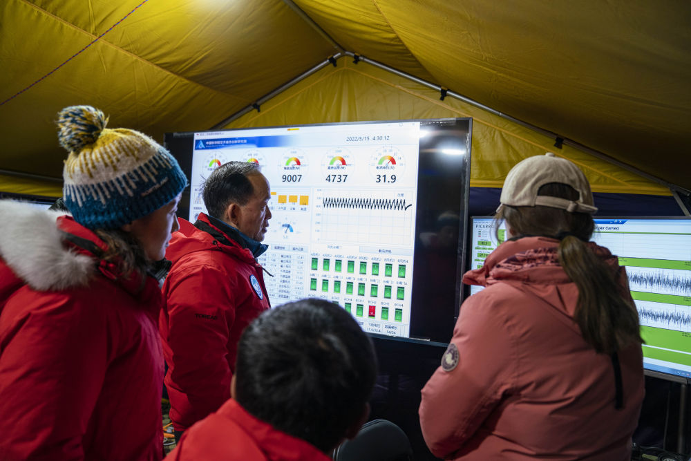 在海拔5200米的珠峰大本營科考指揮帳里,科考登頂隊員每完成一項任務(wù),科學(xué)家和工作人員都報以熱烈的掌聲、喝彩聲。