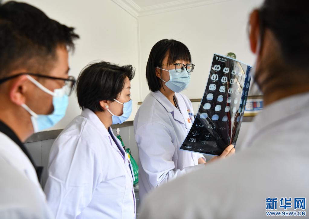 拉薩市人民醫(yī)院呼吸與危重癥醫(yī)學科主任楊蘇喬(右二)查房會診(4月28日攝)。新華社記者 晉美多吉 攝