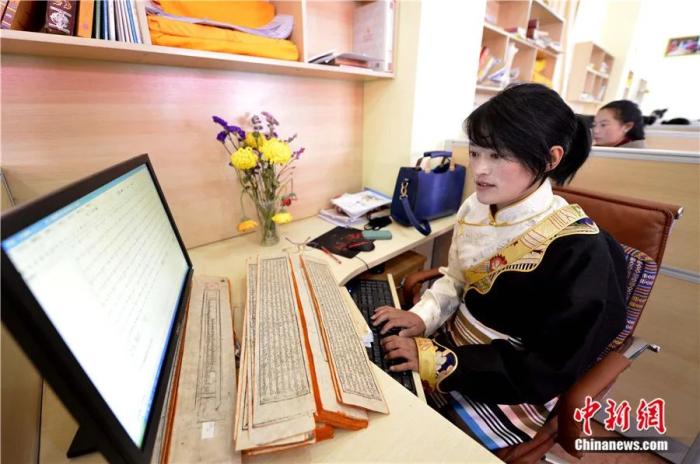 2014年2月,西藏自治區(qū)古籍保護中心色昭辦公室的工作人員扎西央宗正在進行藏文古籍錄入。李林 攝