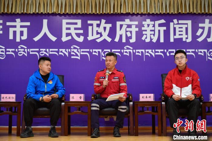 圖為拉薩市青年志愿救援隊(duì)代表陳雷(中)正在分享志愿服務(wù)經(jīng)歷。 貢嘎來(lái)松 攝