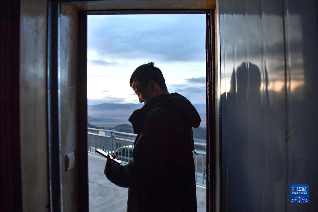 5月24日,日落時(shí)分,在阿里天文臺(tái),尤顯龍走出望遠(yuǎn)鏡圓頂。新華社記者 費(fèi)茂華 攝