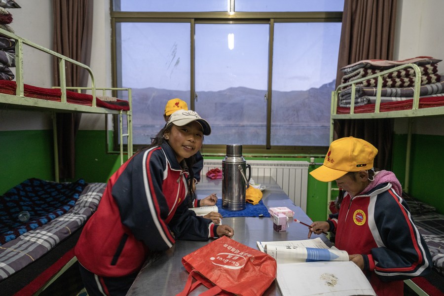 6月5日,扎西宗鄉(xiāng)完全小學(xué)學(xué)生在宿舍學(xué)習(xí)。
