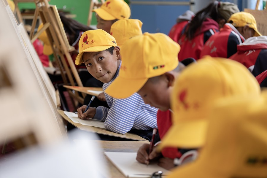 6月5日,阿旺尼曲在上美術(shù)課。