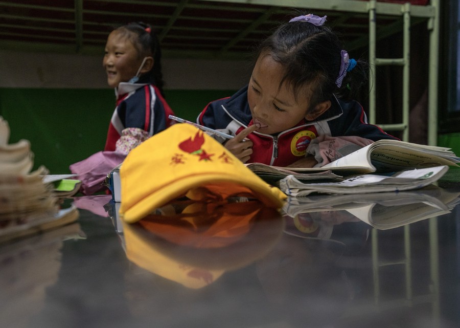 6月5日,扎西宗鄉(xiāng)完全小學(xué)的學(xué)生在宿舍學(xué)習(xí)。