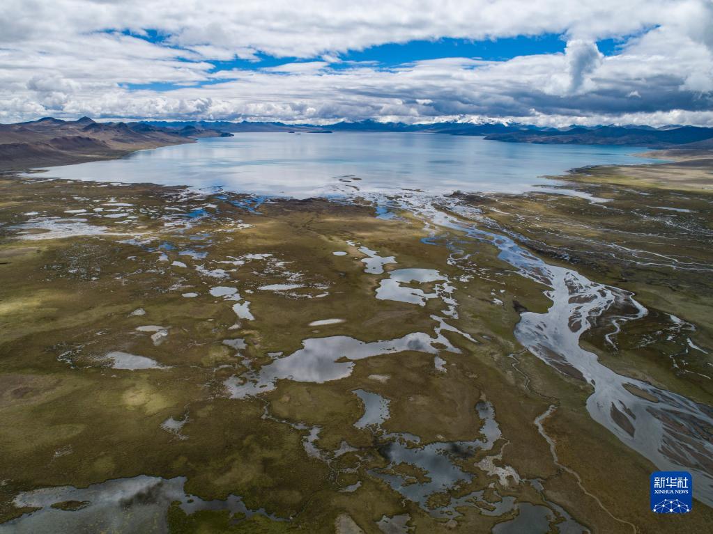 這是7月4日拍攝的普莫雍錯湖邊的濕地(無人機(jī)照片)。新華社記者 孫非 攝