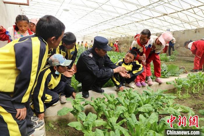 圖為民警為巴嘎鄉(xiāng)小學生科普溫室大棚種植技術。西藏出入境邊防檢查總站阿里邊境管理支隊供圖