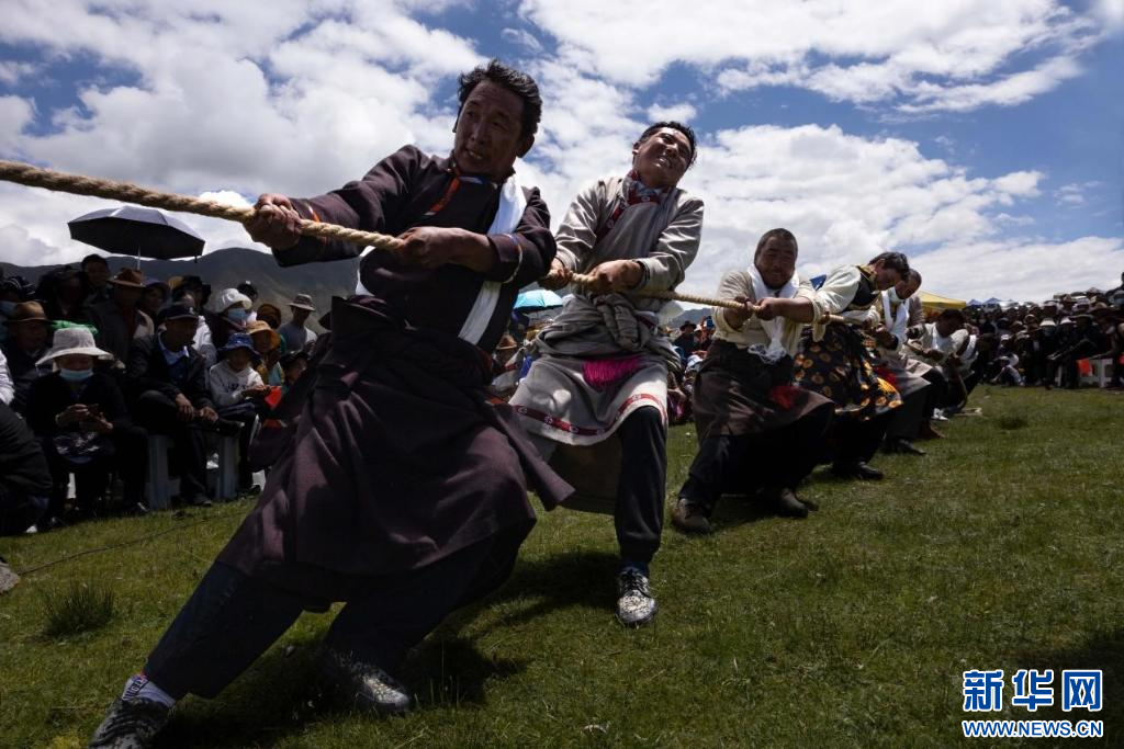 圖為達孜“望果節(jié)”拔河比賽現(xiàn)場(7月28日攝)。新華網發(fā) 司秦菱 攝