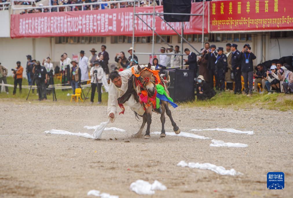 8月10日,騎手進(jìn)行馬術(shù)表演。新華社發(fā)(旦增努布攝)